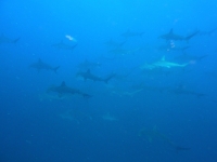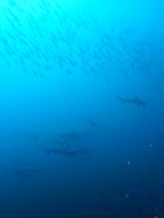 1便→メジロザメ数匹、2便→遠泳?、3便→ゲスト2名がハンマー大群目撃、メジロザメ数匹、超巨大なマダラトビエイ×2、4便→ハンマー大群~単体ひっきりなし!!